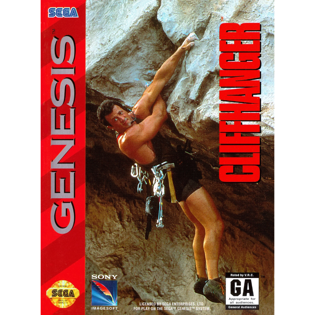 Stallone vs. the slopes. Cliffhanger for Sega Genesis—complete with manual, excellent condition. 16-bit survival with fists.