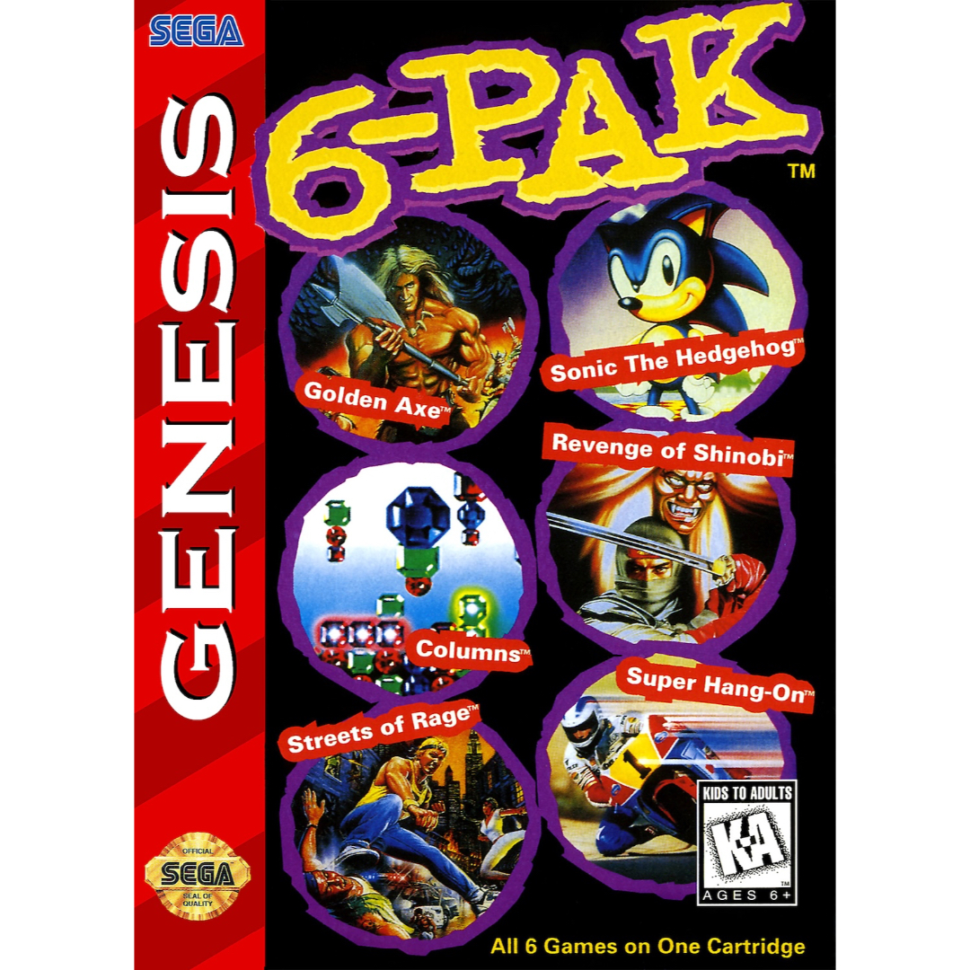6 classics, 1 cart. Genesis 6-Pack—includes Sonic, Golden Axe, and more. Excellent cartridge only. Instant starter kit.