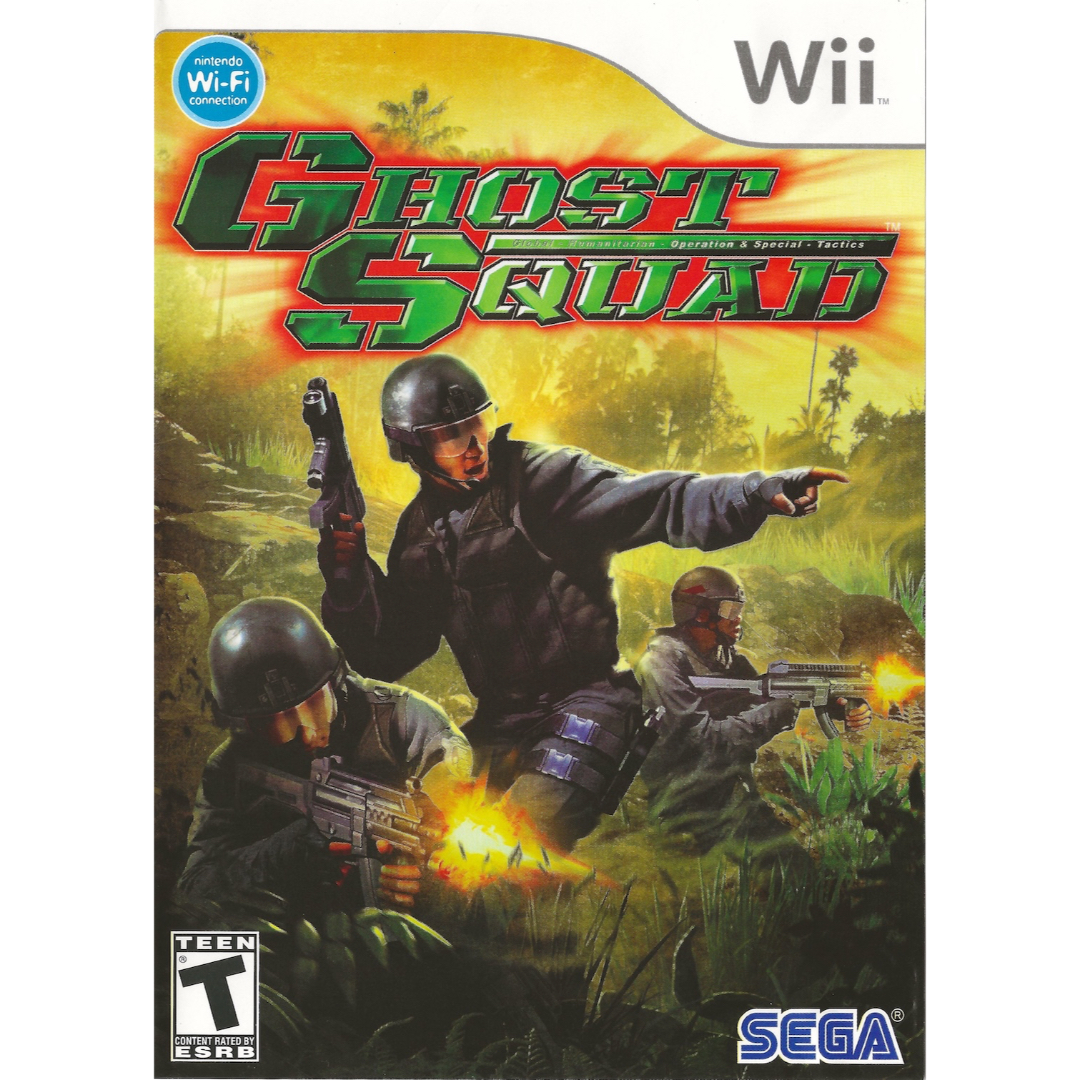 Arcade shooter vibes, Wii-style. Ghost Squad—disc only, excellent condition. Co-op action with light gun thrills.