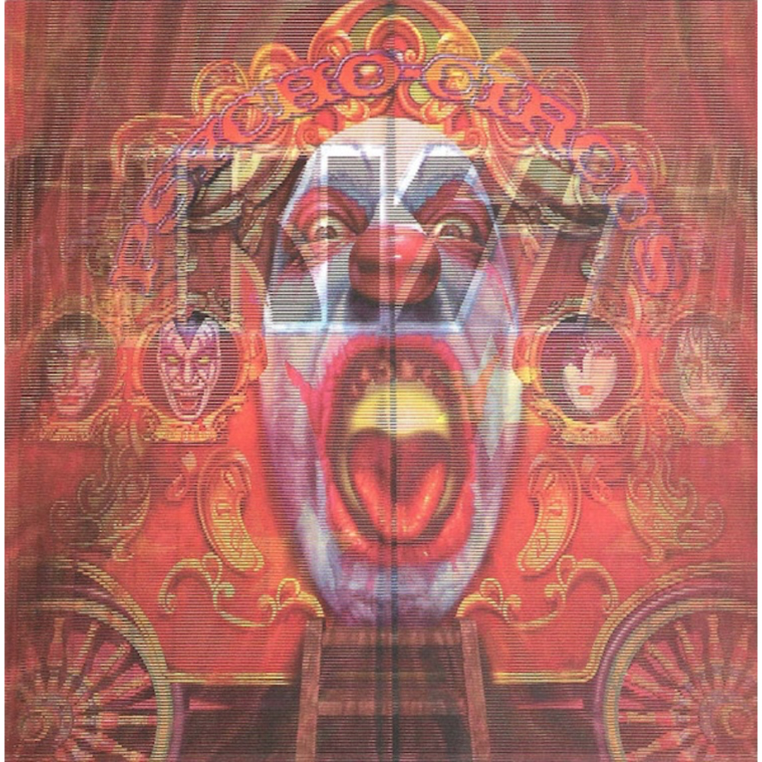 Clown masks and chaos. Psycho-Circus—CD in good condition. KISS goes theatrical (again).